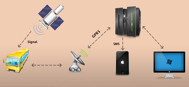 The system software in the tracker is programmed to monitor the unit being tracked continuously and the tracker will send the tracked information real-time to GPRS stations to facilitate instant tracking. The central server system which maintains the traced information of the tracking vehicle is always in touch with the GPRS station and receives the tracked position of the units being tracked all-time and anywhere.